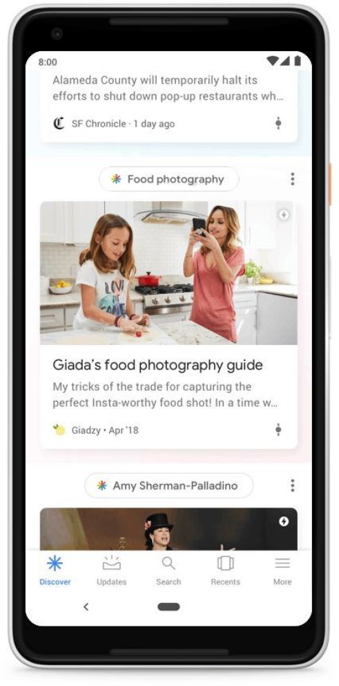 El "feed" de noticias, que Google lanzó en julio de 2017 a través de su aplicación para celulares con Android, cambia de nombre y pasa a llamarse Google Discover, lo que refleja mejor la misión del gigante tecnológico de descubrir contenido interesante de forma personalizada.