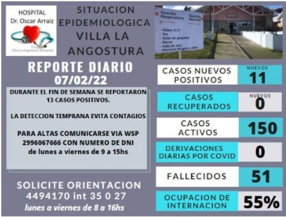 En el mismo, se detalló además que en las últimas 24 horas se registraron 11 nuevos contagios y no fueron dados de altas pacientes.