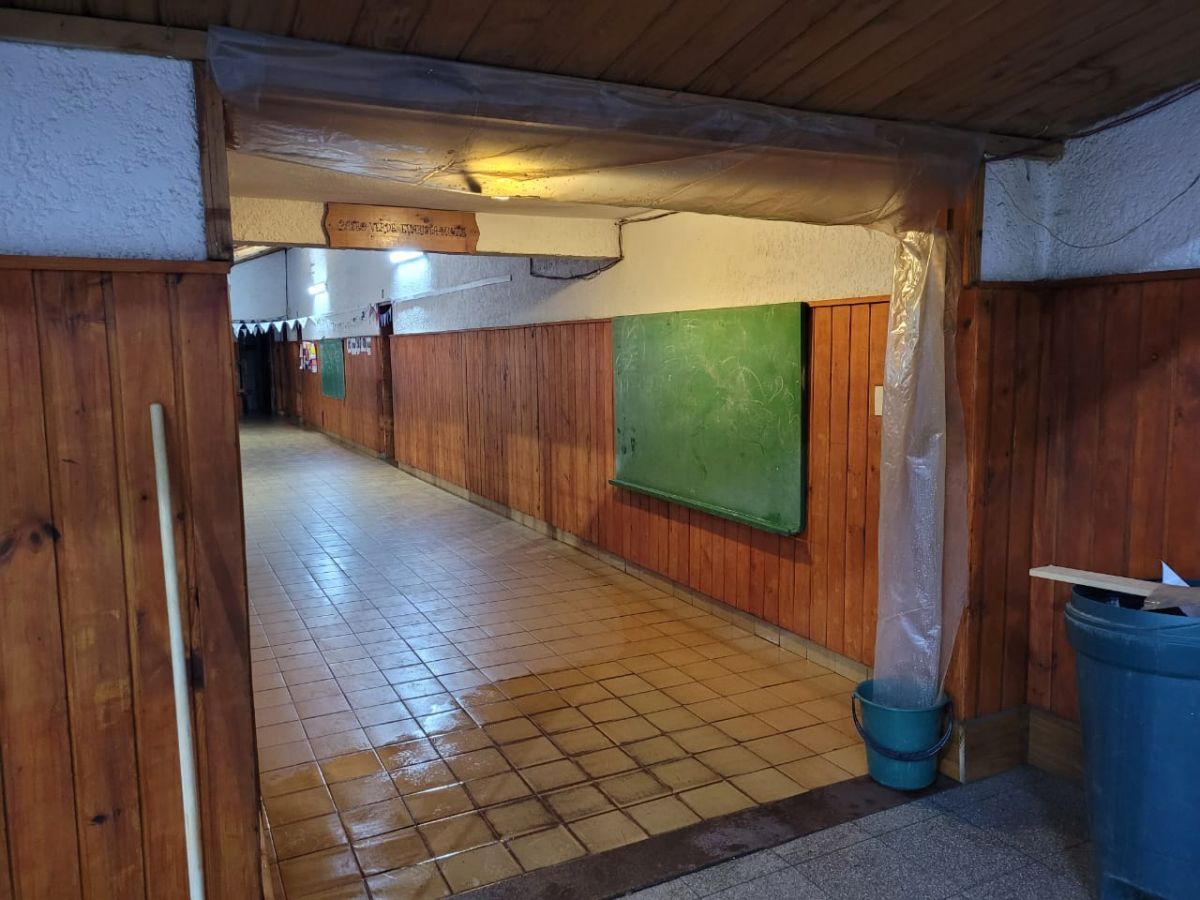 En tanto que en un pasillo que comunica el patio techado con las aulas, se detectó una importante filtración de agua que si bien fue informada, no ha sido reparada por personal de Mantenimiento Escolar.