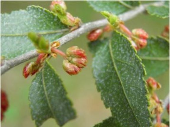 Para multiplicarse se propaga por semillas y florece en primavera. En un mismo ejemplar existen flores masculinas y femeninas, unisexuales; las flores masculinas son verde amarillentas y las femeninas verdosas reunidas en inflorescencias en grupos de tres de los que derivan los frutos secos (aquenios), cuyo polen se dispersa por la acción del viento. (Foto)