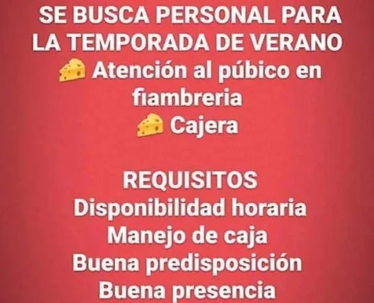 Por otro lado, la dueña de una casa de indumentaria que también busca empleada (franquera) explicó: "Yo necesito alguien de Villa sí o sí. Pensá que este no es un trabajo de todos los días. Esto es como un complemento para una chica que tiene que tener otra cosa fija. Por ahora no consigo".