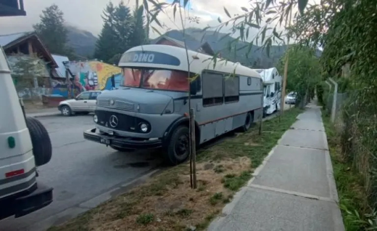 Una vecina de la localidad remitió hoy una foto de la situación que se vive esta mañana frente a la Biblioteca Popular Osvaldo Bayer, donde pernoctaron cuatro motorhomes y una casilla rodante.