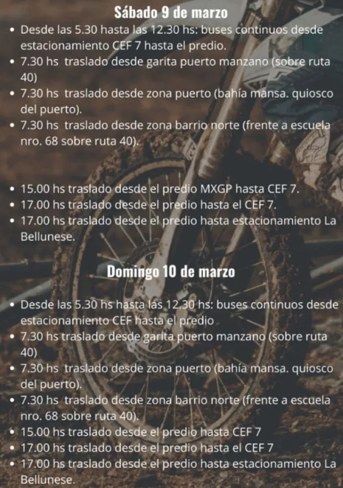 Comienzan las actividades del MXGP y te compartimos todo lo que tenes que saber: cronogramas, horarios, lugares, colectivos y entradas 2x1 para residentes