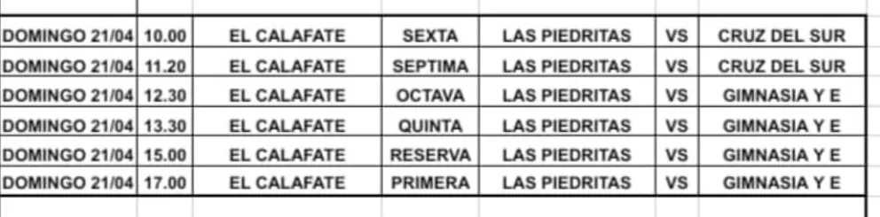 El tramo final para conseguir el ansiado ascenso comienza a tomar forma y el equipo local buscará revertir lo ocurrido en las últimas finales, para finalmente estar en el lugar que se merece tras cuatro temporadas en la división B de las cuales la tuvo como protagonista en las últimas tres finales. La fecha ocho comenzará para la verdiblanca este dia domingo a partir de las 10 hs en el Andres Martin donde la sexta en primer turno y a continuación la séptima se medirán ante Cruz del Sur para luego dar el paso a las demás divisiones ante Gimnasia y Esgrima, teniendo el partido principal turno en el sintetico del Barrio Calafate a las 17:00 hs.