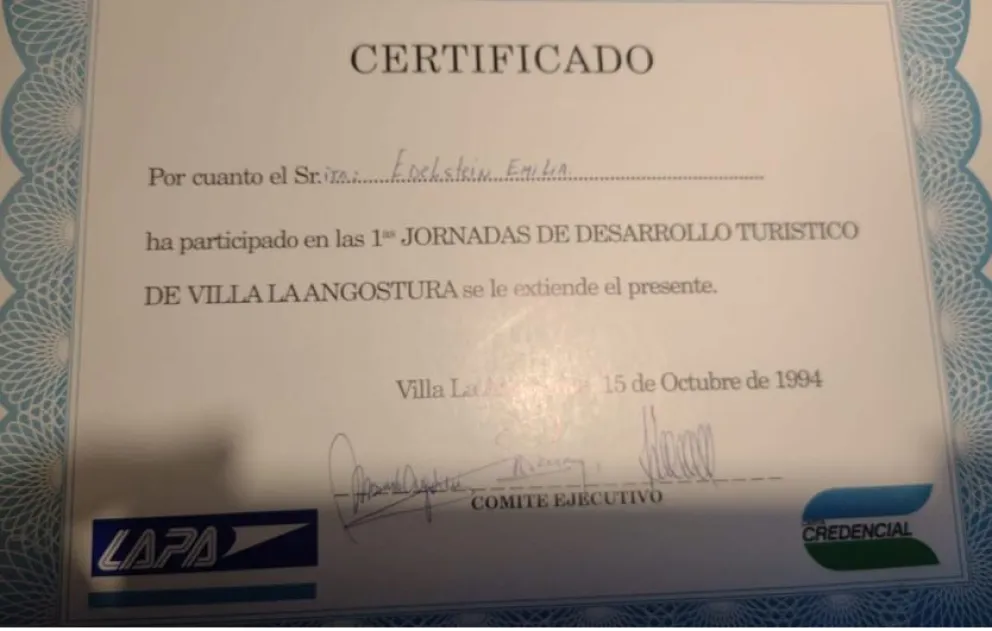 Sus inicios nos certifican en la foto, de su participación en las "Primeras Jornadas de Desarrollo Turístico de VLA", de fecha 15 de octubre de 1994.