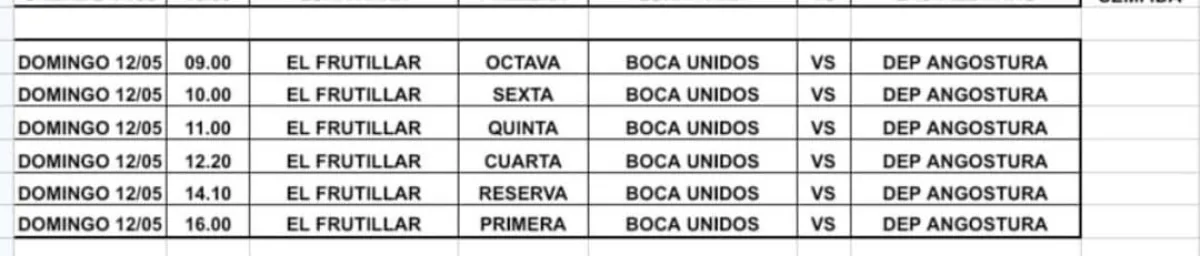 La jornada del domingo comenzará a partir de las 09:00 hs con el encuentro de octava división teniendo el plato fuerte de la primera a las 16:00 hs todas las categorías ante Boca Unidos.