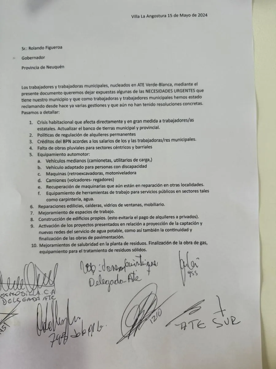 Las necesidades que ATE local le planteó por escrito al gobernador Figueroa