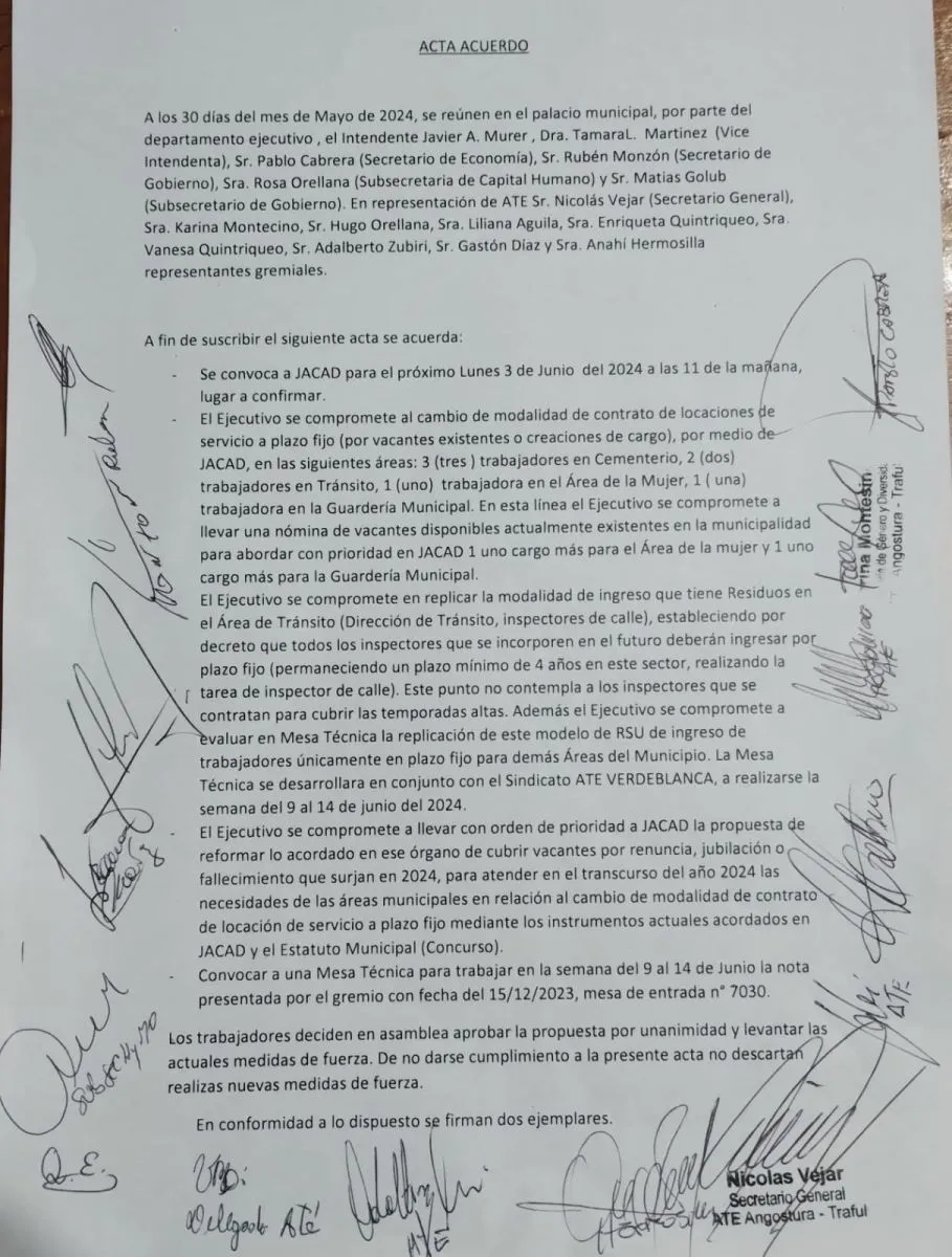 Antes de irse a Francia, Murer arregló con ATE la incorporación de contratados a la plantilla municipal