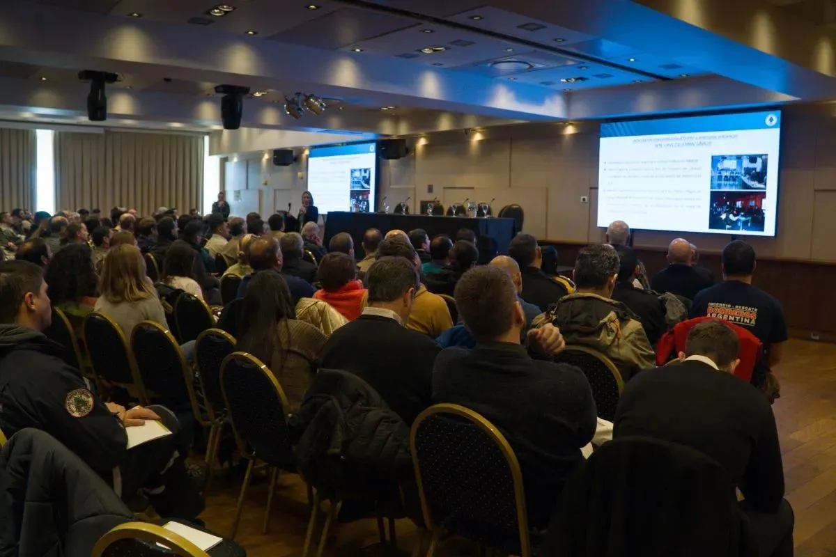 La reunión estuvo presidida por Adrián Iribarren, secretario de Protección Civil del Ministerio de Seguridad y Justicia de Río Negro, y Walter Cortés, intendente de Bariloche. También participaron referentes nacionales en la materia.