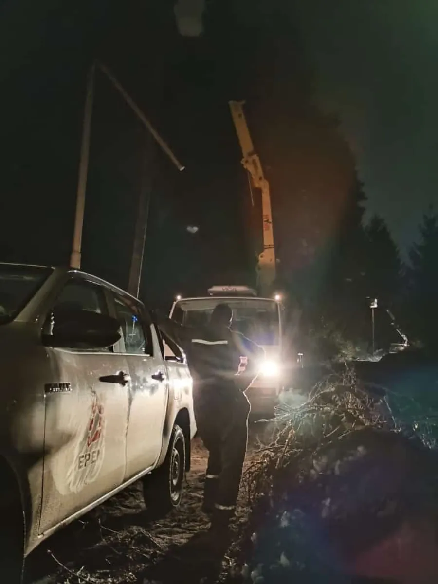 Cabe si hacer una mención especial a los trabajadores del EPEN, quienes este fin de semana largo, trabajaron a tiempo completo y en condiciones climáticas adversas para poder reestablecer el servicio en toda la localidad. En varias ocasiones incluso, subiéndose a los postes en plena noche, con temperaturas bajo cero y teniendo que iluminarse solamente con las luces de las camionetas.