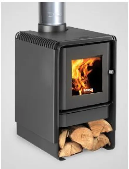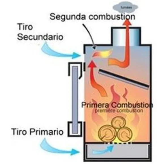 • Una evolución de las estufas de cámara de combustión cerrada, son aquellas que tienen dos cámaras de combustión la primera es la cámara donde se quemas los leños colocados en la misma, con el aporte del aire que entra por debajo y luego esos gases que tienen dentro de si residuos de los leños sin quemar, pero ya volátiles, mediante el aporte de otro ingreso de aire vuelve a combustionare en la segunda cámara. Ello las vuelve más eficiente en el aprovechamiento de la totalidad del material de combustión