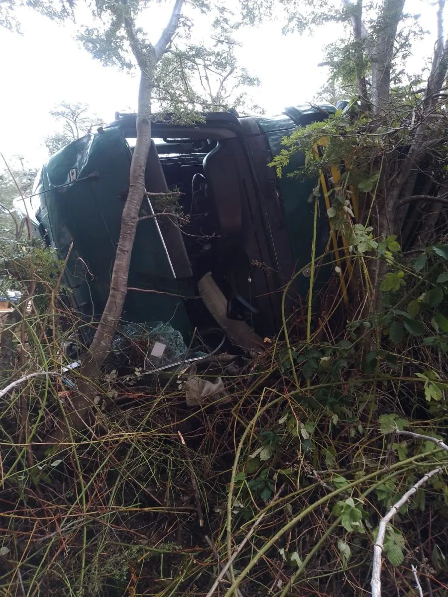 Los Bomberos Voluntarios informaron que a las 10:24 horas recibieron un llamado telefónico alertando sobre el incidente vial. Al llegar al lugar, constataron que el camión había volcado sobre la banquina, dejando a su único ocupante herido.