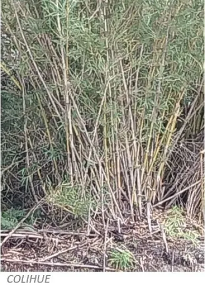 Caña Colihue (Chusquea culeou) Bambú rizomatoso de 2 a 8 metros de altura, son cañas de color amarillo en su madurez, las hojas son lanceoladas de 5 a12 cm.                                        Forman parte del sotobosque, se observan densos cañaverales en lugares húmedos .Su floración es aproximadamente cada 20 0 30 años, luego la planta muere.