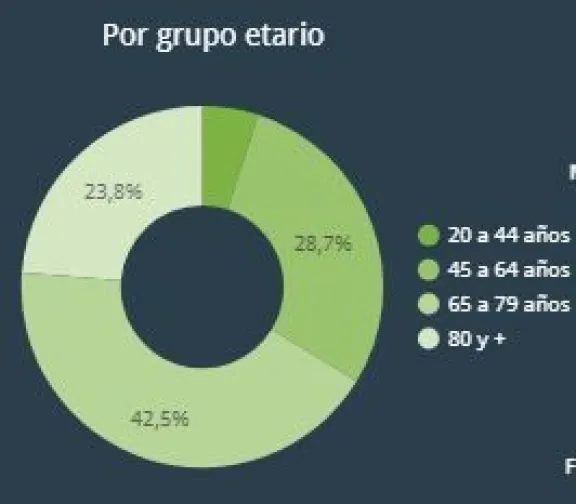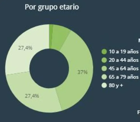 Entre los hombres, en tanto, la franja más afectada fue la comprendida entre los 65 y 79 años, con un porcentaje de 42,5%.