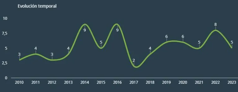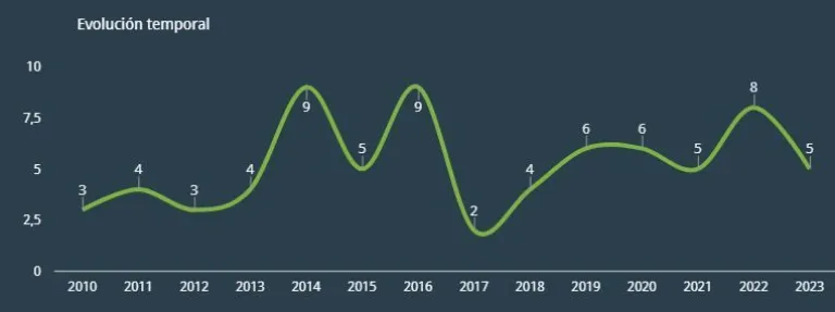 Entre los varones, el peor año fue 2023, con 8 casos.