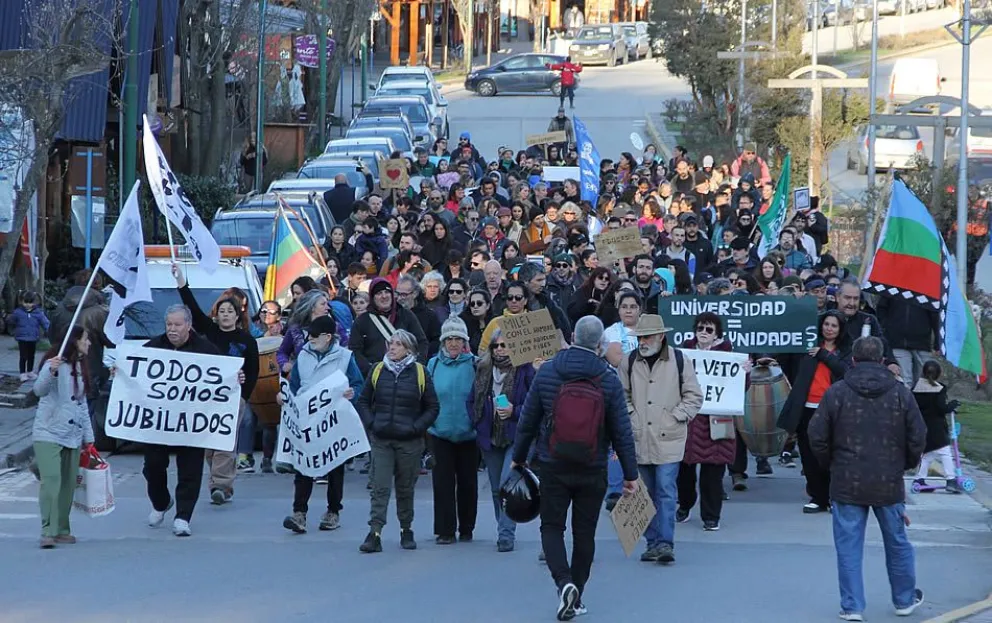 Unos doscientos vecinos marcharon hoy por la Avenida Arrayanes en defensa de las universidades públicas y en rechazo al "desfinanciamiento" que impulsa la gestión de Javier Milei, a través del veto a la ley que garantiza fondos a las instituciones de educación superior.