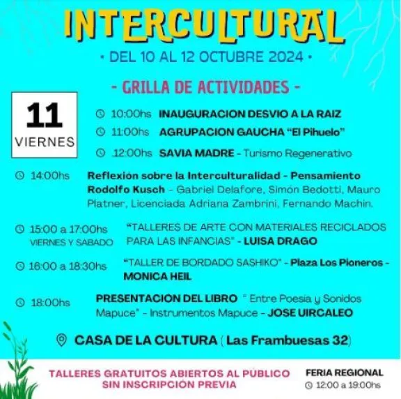 Del 10 al 12 de octubre, la localidad será sede del 1° Festival Intercultural Patagónico, un espacio “de encuentro y aprendizaje para la comunidad”. La entrada es libre y gratuita.