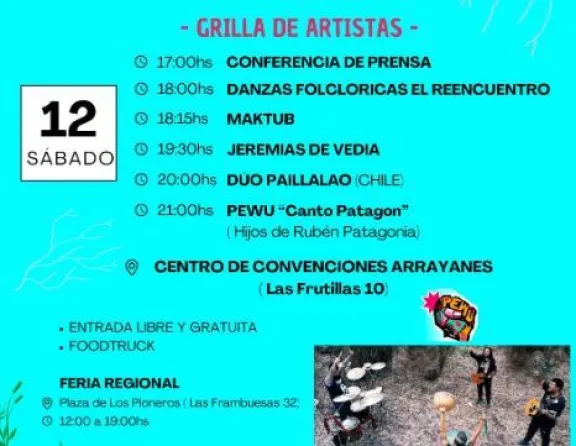 El festival culminará con un show musical del grupo PEWU Canto Patagón, que contará con la participación de los hijos de Rubén Patagonia.