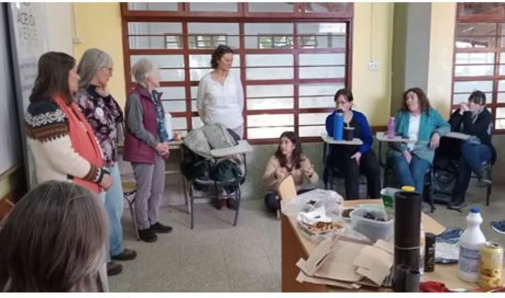 También estamos colaborando en la Huerta del Centro de Salud de Barrio Norte. En este espacio utilizamos ecobotellas para hacer bancales y también dentro del invernadero. Solicitamos los materiales a la Carpintería Municipal para armar una compostera comunitaria. Con el personal del Centro de Salud ya estamos haciendo separación de residuos y  compost.
