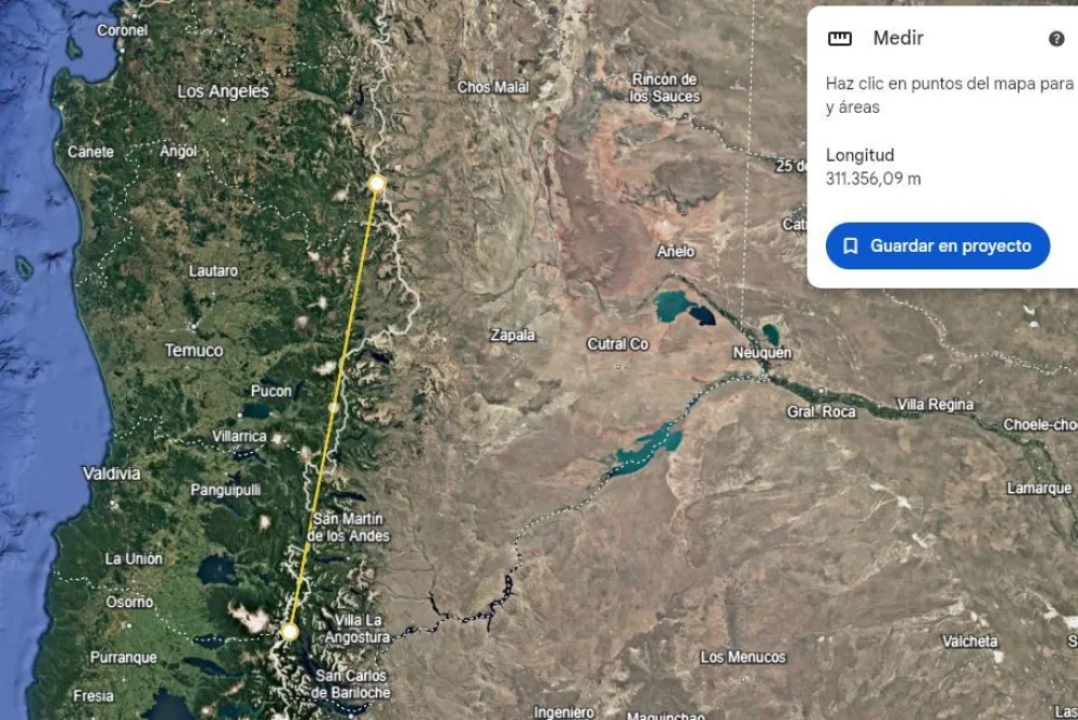 El volcán, estáa una distancia recta de 311 km de Villa la Angostura