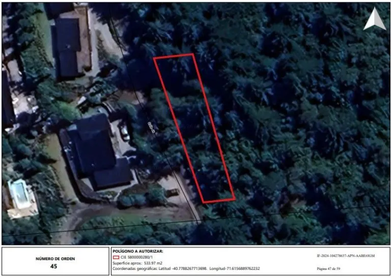 En Villa La Angostura, se han identificado dos propiedades incluidas en el listado del decreto. Uno de estos terrenos se encuentra en la calle Los Alerces 387, en cercanías a una reconocida hostería.