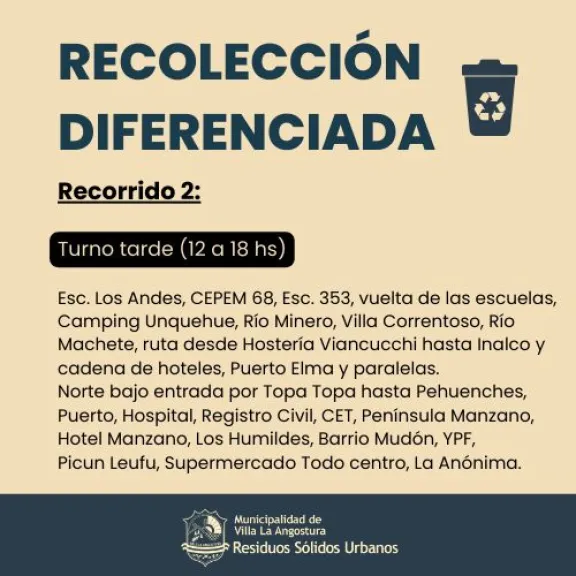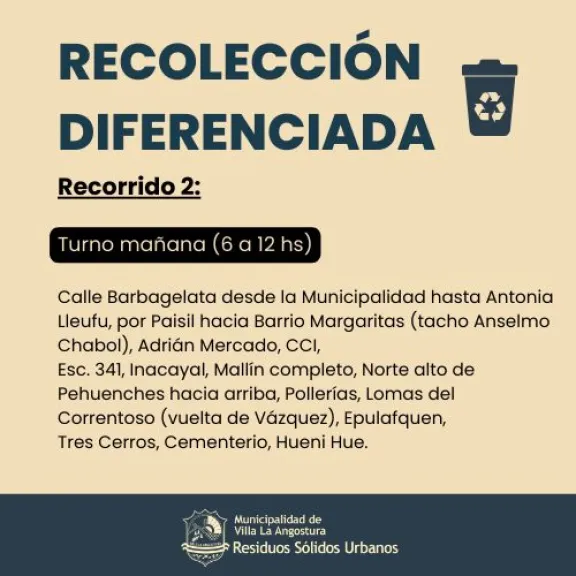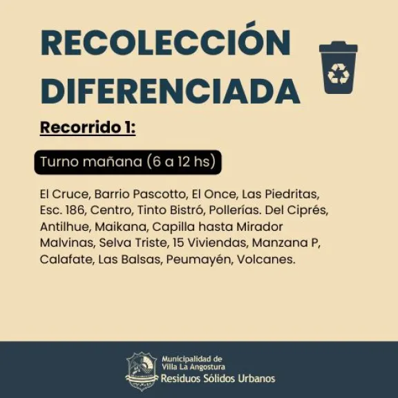 Desde el 5 de agosto, nuestra localidad ha implementado un sistema de recolección diferenciada de residuos, impulsando la separación en origen entre materiales reciclables y no reciclables. Esta iniciativa busca reducir la cantidad de desechos enviados a los rellenos sanitarios, fomentar el reciclaje y contribuir a la conservación de recursos naturales y energía.
