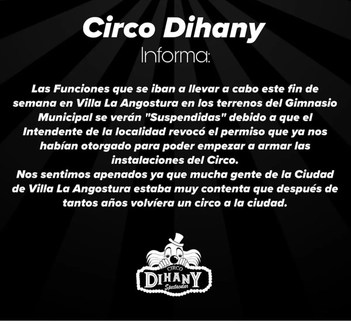 Sociedad El comunicado del Circo luego de ser penalizado por el municipio 26/02/2025 El comunicado del Circo luego de ser penalizado por el municipio Te puede interesar El Grupo de Rescate convoca a Asamblea General para renovar autoridades Reforzarán la prevención en rutas durante el fin de semana largo Super e hipermercados deberán exhibir QR con precios actualizados de la canasta básica La Escuela Especial 18 ya tiene gas natural Día del Animal en Villa La Angostura: Vacunación y juegos gratis Uso de celulares en escuelas de Neuquén: La nueva reglamentación La Escuela Especial N° 18 ya cuenta con gas natural Corte de luz programado para la mañana de hoy: qué barrio será afectado Últimas noticias Voluntarios sostuvieron un Hogar para hombres en situación de calle durante cinco meses El Grupo de Rescate convoca a Asamblea General para renovar autoridades Los Cachorros fueron nominados a los premios Berbel 2026 Reforzarán la prevención en rutas durante el fin de semana largo Super e hipermercados deberán exhibir QR con precios actualizados de la canasta básica Bomberos controlaron incendio en obra en construcción