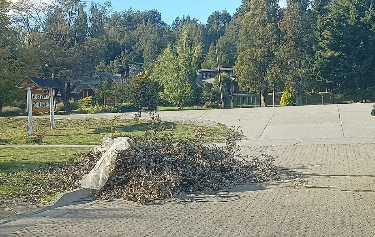 Un vecino remitió ayer dos fotos tomadas en la calle Río Caleufú, casi Avenida 7 Lagos. En ese sitio alguien depositó residuos forestales y nylon
