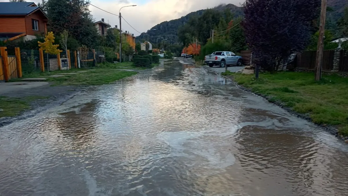 Cerca de las 18 horas, una retroexcavadora privada que realizaba trabajos sobre la calle Lacar al 500, en Barrio Norte, rompió un caño maestro de agua provocando una importante pérdida que rápidamente inundó la calle.