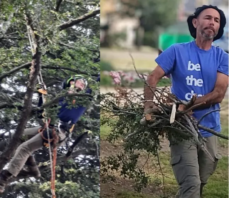 Luego de toda la planificación, llegó el día. Fue un encuentro que comenzó en la Plaza de los Pioneros con la poda de un Ñire, especie nativa, necesaria y emblemática. Muy vapuleada por la gran tala que se viene dando de hace años.