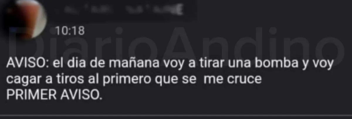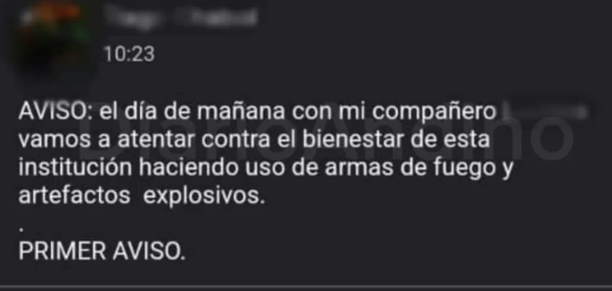 “Aviso: mañana voy a tirar una bomba y voy a cagar a tiros al primero que se me cruce. PRIMERO AVISO”, escribió uno de los adolescentes.