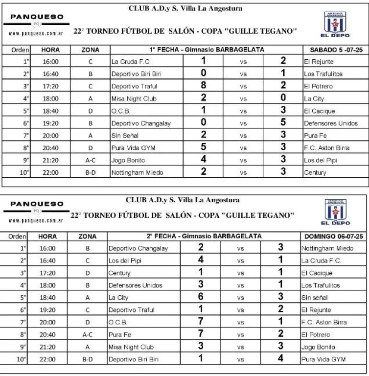 Este fin de semana se jugaron las dos primeras fechas del torneo de futbol de salon "Copa Guillermo Tegano" con 20 equipos participantes y una doble jornada intensa donde hubieron un total de 20 partidos y un total  de 105 goles con un gimnasio Barbagelata colmado de simpatizantes que adelanta lo que será el desarrollo del campeonato, con una gran convocatoria  intensificando en instancias finales.