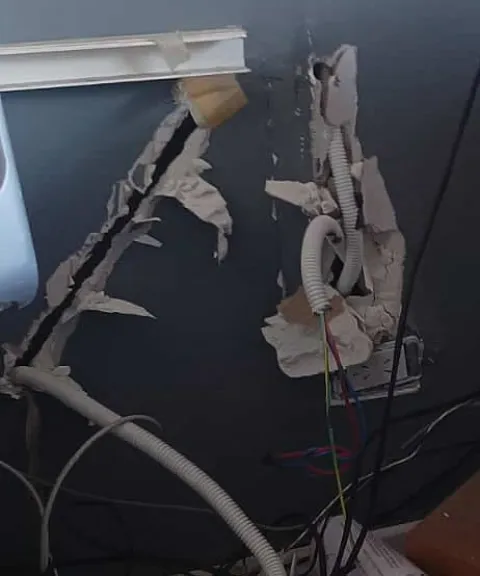 Además, provocaron destrozos en las paredes, presumiblemente al intentar arrancar las computadoras de los cables a tierra.