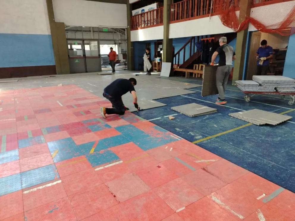Comenzaron los trabajos para colocar el nuevo piso en el gimnasio Adrián Mercado