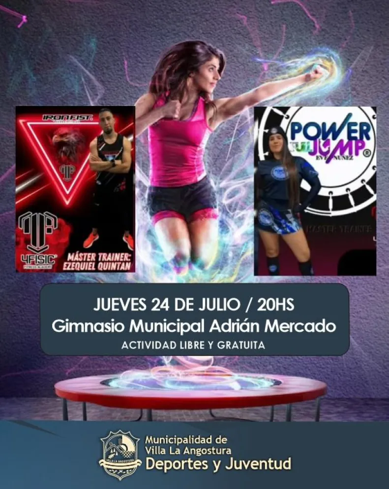 a Municipalidad de Villa La Angostura, a través de su Secretaría de Deportes, convoca a los vecinos a participar de una clase única y gratuita de Fitness Combate y Jump Fitness, que se realizará el próximo jueves 24 de julio a las 20:00 horas en el Gimnasio Municipal Adrián Mercado.