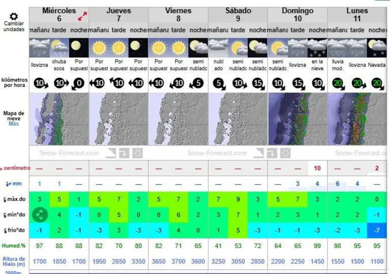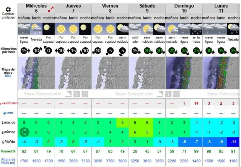 SnowForecast base del cerro Bayo