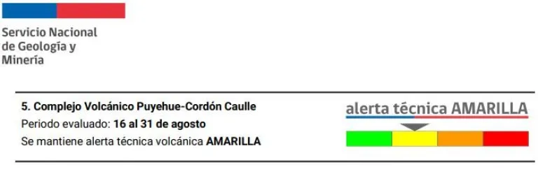 No obstante, es necesario señalar que el SERNAEOMIN, entidad estatal chilena encargada de los monitoreo de los volcanes, no cambió el nivel de alerta del complejo tectónica y sigue siendo, como desde hace mas de un año a esta parte, de color Amarillo.