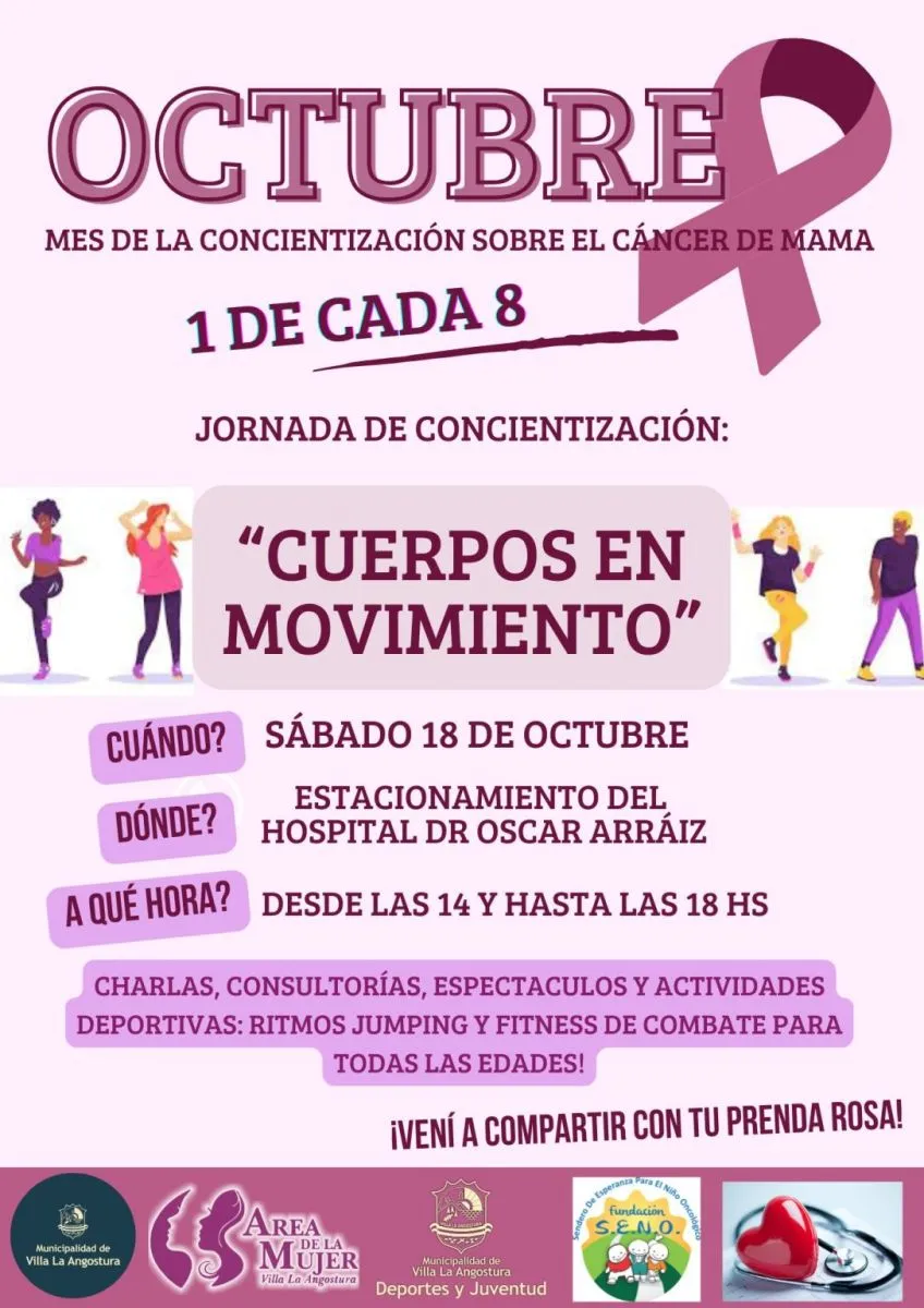 En el marco del Día Internacional de la Lucha contra el Cáncer de Mama, la Secretaría de Deportes, junto con el Área de la Mujer de la Secretaría de Ciudadanía y Comunidades Saludables y el Hospital Dr. Oscar Arráiz, organizan una nueva jornada abierta a toda la comunidad bajo el nombre “Cuerpos en Movimiento”.