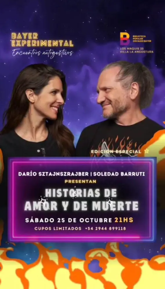 La Bayer Experimental abre sus puertas al asombro, la pregunta y la sensibilidad colectiva con un evento que promete ser uno de los puntos altos del año cultural: Darío Sztajnszrajber y Soledad Barruti presentan “Historias de amor y de muerte”, una obra que indaga en lo que nos atraviesa cuando amamos, esperamos o despedimos.