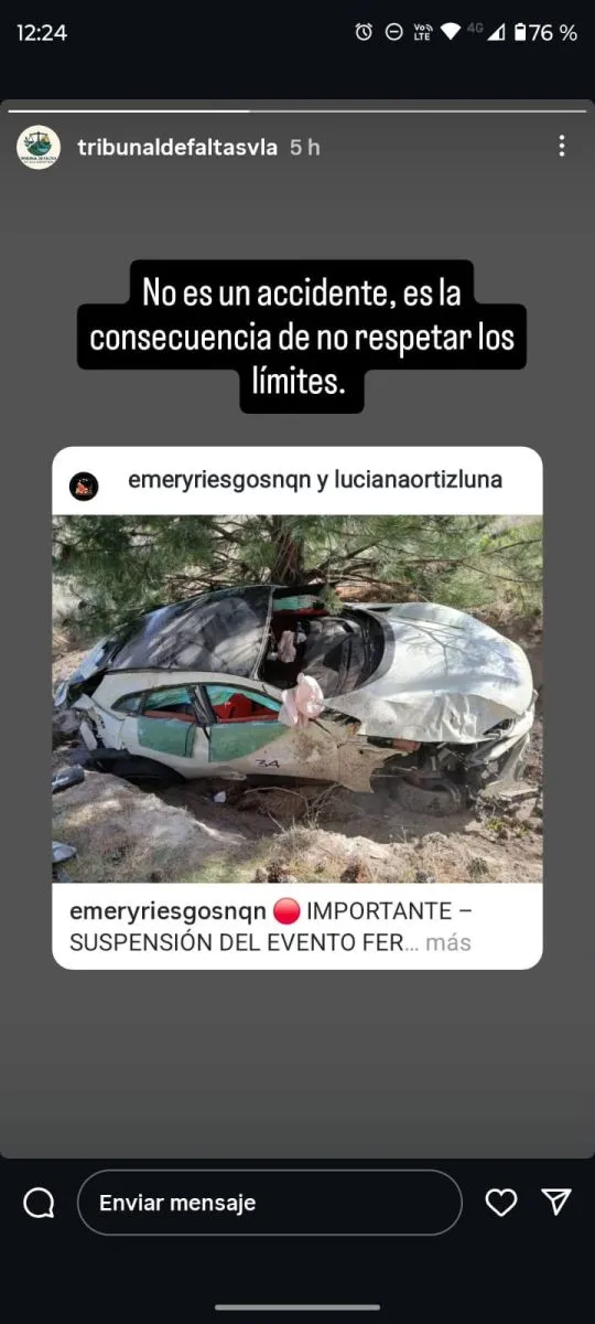 Su mensaje dejó en claro que, desde su perspectiva, lo ocurrido no fue un hecho fortuito sino el resultado directo de maniobras temerarias y del desobedecimiento reiterado a los límites establecidos.