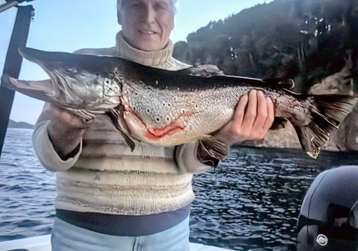 Una sorprendente jornada de pesca deportiva se vivió ayer cuando el vecino Rodolfo “Pocholo” logró capturar una trucha marrón de 8,5 kilos en el Lago Nahuel Huapi.
