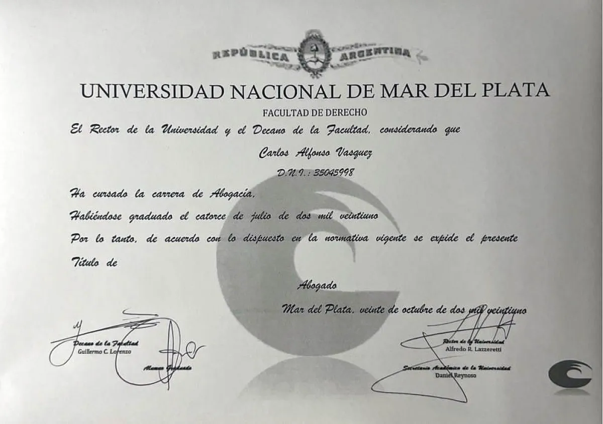 Lee también: El abogado de Carlos Vázquez negó la usurpación de título y responsabilizó a la Auditora por no verificar credenciales al contratarlo
