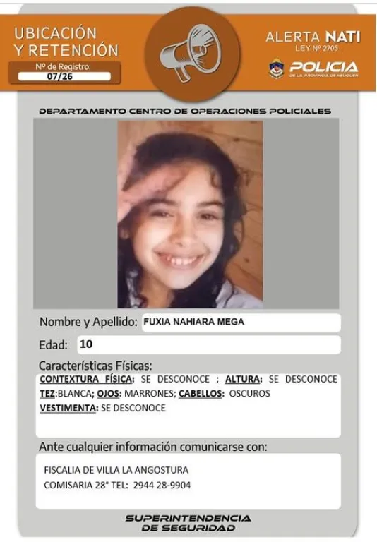 La Fiscalía y la Policía lanzaron un pedido de ubicación y paradero para dar con una madre y su hija de 10 años que se encuentran desaparecidas desde hace varios días en Villa La Angostura.