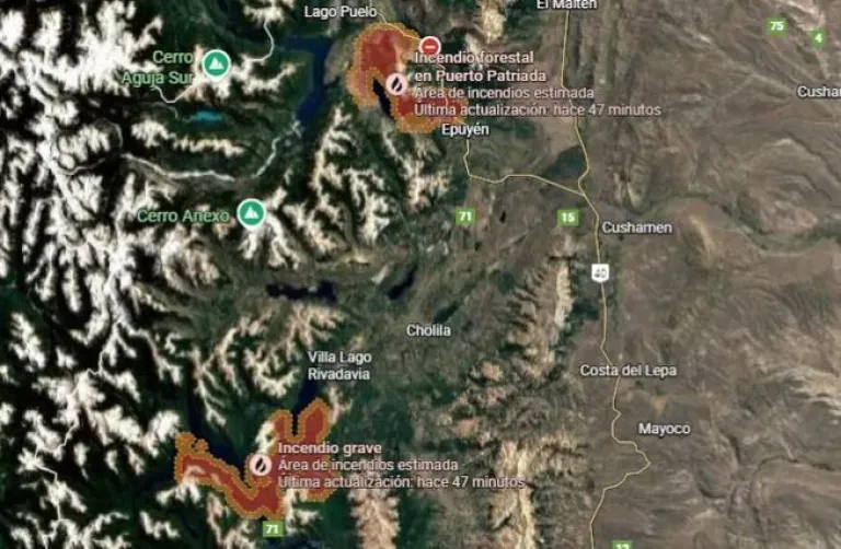 Desde Puerto Patriada, el incendio avanzó hacia sectores rurales y forestales de El Hoyo, uno de los puntos más sensibles de la Comarca Andina. En la zona trabajan de manera permanente brigadistas, bomberos voluntarios y equipos del Servicio Nacional de Manejo del Fuego, con el objetivo de contener las llamas y proteger viviendas.