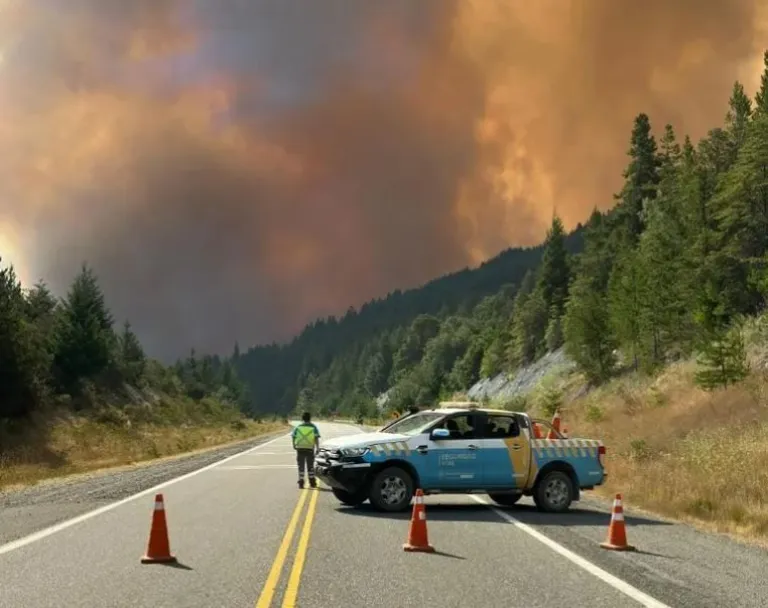 Como consecuencia del avance de las llamas, Vialidad Nacional dispuso el corte total de la Ruta 40 entre Epuyén y El Hoyo, además de la restricción para camiones en el tramo que une Dina Huapi y El Bolsón, una medida clave para garantizar la seguridad y facilitar el trabajo de los equipos de emergencia.