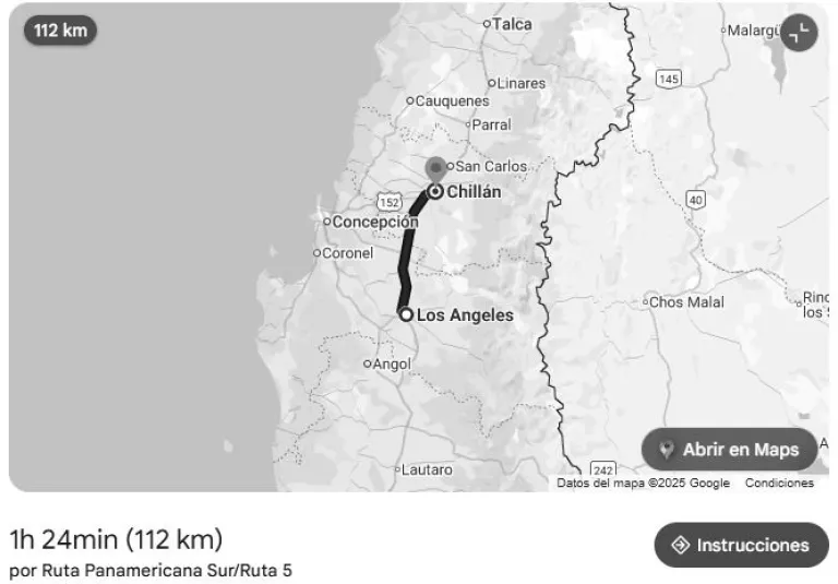 Cuando por fin estoy en el hotel, y luego de  un poco de sueño y una ducha caliente, bajo y le cuento mis últimas novedades a mi colega trasandino, Argentino Garay, comprendo todo: Los Ángeles y Chillán (ambas palabras con sus sendas y oportunas tildes) son dos localidades de la zona central de Chile, y el cartel que en un principio me hizo alucinar no era sino la pedestre información con los dos puntos terminales del recorrido de un micro, o bus, como llaman de este lado de la cordillera. Todo esto lo fui escuchando y conociendo entre las carcajadas de Argentino Garay.