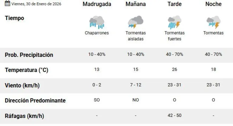 Para mañana viernes, la temperatura en Angostura rondará entre los 13° y los 26° y se anuncian lluvias y tormentas.