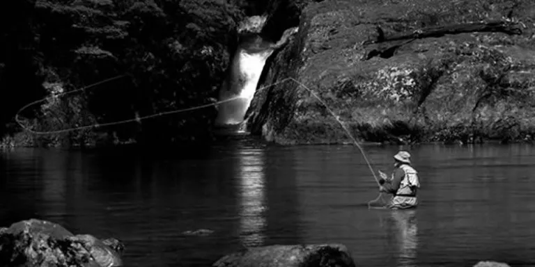 También hay un hombre. Todos lo vemos. Con un traje verde de goma y una camisa de mangas cortas. Tiene una caña y hace movimientos delicados. La tanza ondula en el aire y toca la superficie del espejo como las mariposas. Mueve apenas las manos y el dibujo se repite una y otra vez hasta que elige el punto donde dejará reposar su mosca, hecha con plumas de gallo batarás, atadas por él mismo. Eso a lo que dedica el invierno a la espera de este momento del atardecer en el río, donde los niños ya están cansados y juegan a las cartas cerca de la carpa. Ahora, este ratito, es su ratito. Y está solo. Mirando al oeste cómo se va el sol. Tiene medio cuerpo en el agua, y ahí siente la fuerza del río. Y la otra mitad ve el río quieto. Está solo si uno no cuenta las mariposas que no son mariposas, pero no importa, las libélulas, las truchas, el Martín pescador, y los jejenes.