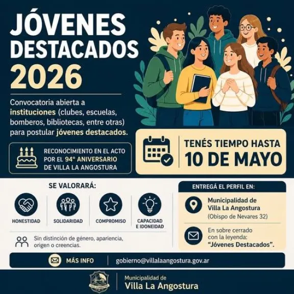 Los perfiles de los postulantes deben ser entregados (un sobre por postulante)en mesa de entradas de la Municipalidad, ubicada en calle Obispo de Nevarez 32, en sobre cerrado indicando en este, la institución que lo presenta y la leyenda “ Jóvenes Destacados”, dirigido a la Secretaria de Gobierno, como plazo máximo se establece el día 10 de Mayo del corriente año.