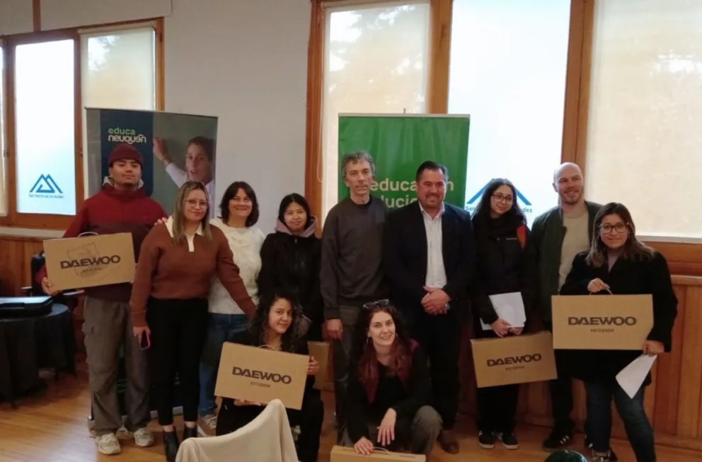 Becas Gregorio Álvarez: jóvenes de Villa La Angostura recibieron notebooks